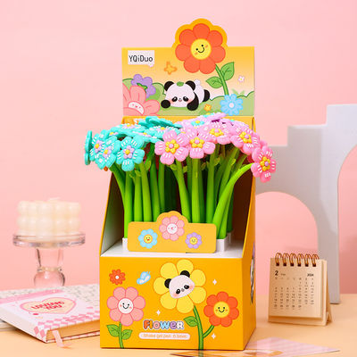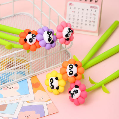 Panda Flower Pen Rose Shaped Ballpoint Pen Creative Liquid Black 0.5mm Gel Ink Rollerball Pen Untuk Anak Perempuan Wanita, Perlengkapan Dekorasi Kantor Sekolah