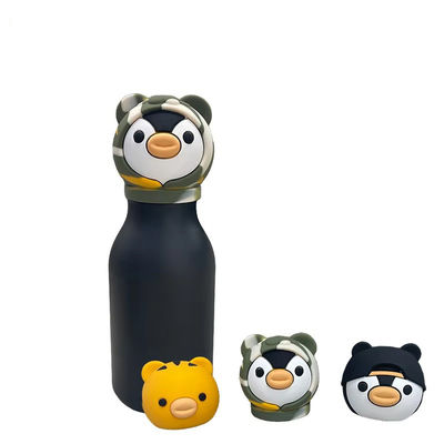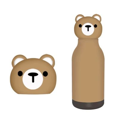 16oz Insulated Stainless Steel Water Bottle With Detachable Soft Animal Head Lid. A cute, leak-proof and eco-friendly thermos perfect for kids and teens at school, travel or sports activities.