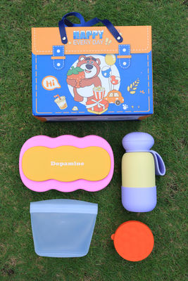Macaron Silicone Lunch Gift Set – Divided Bento Box, 304 Stainless Steel Bottle, Silicone Food Bag & Storage Container Eco-Friendly Holiday Tableware